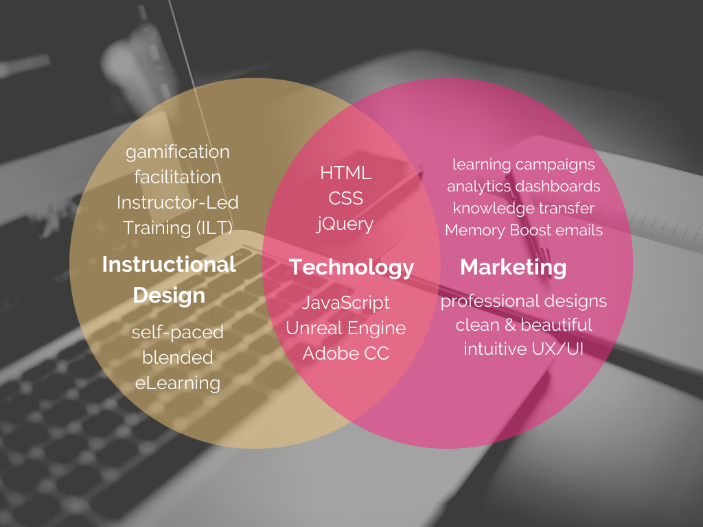 My work sits at the intersection of instructional design, marketing, and information technology. I am fascinated with the learning engineering process and with how we can blend learning sciences with modern technologies to improve and enhance learning experiences.